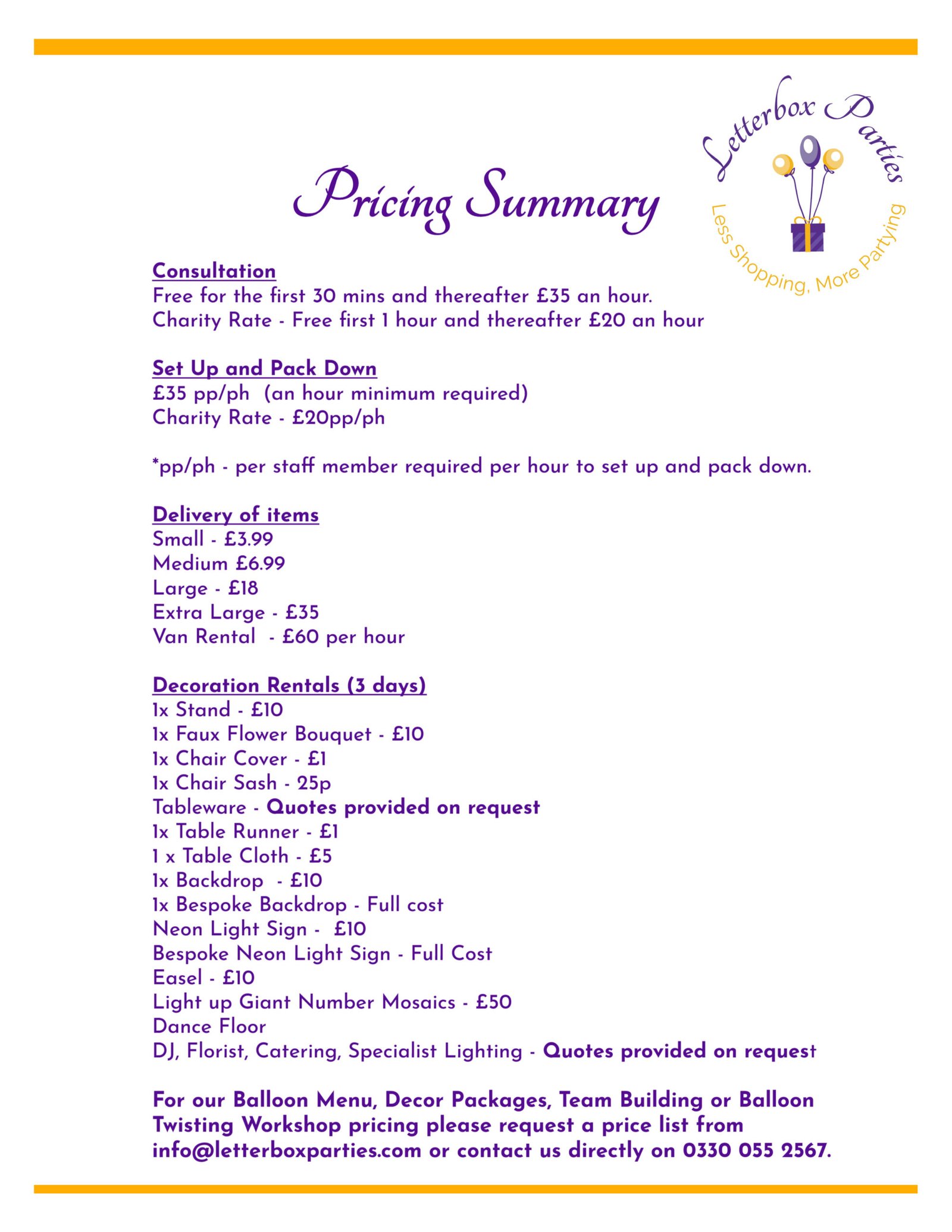 - Flexibility. You can use our party boxes for a variety of events